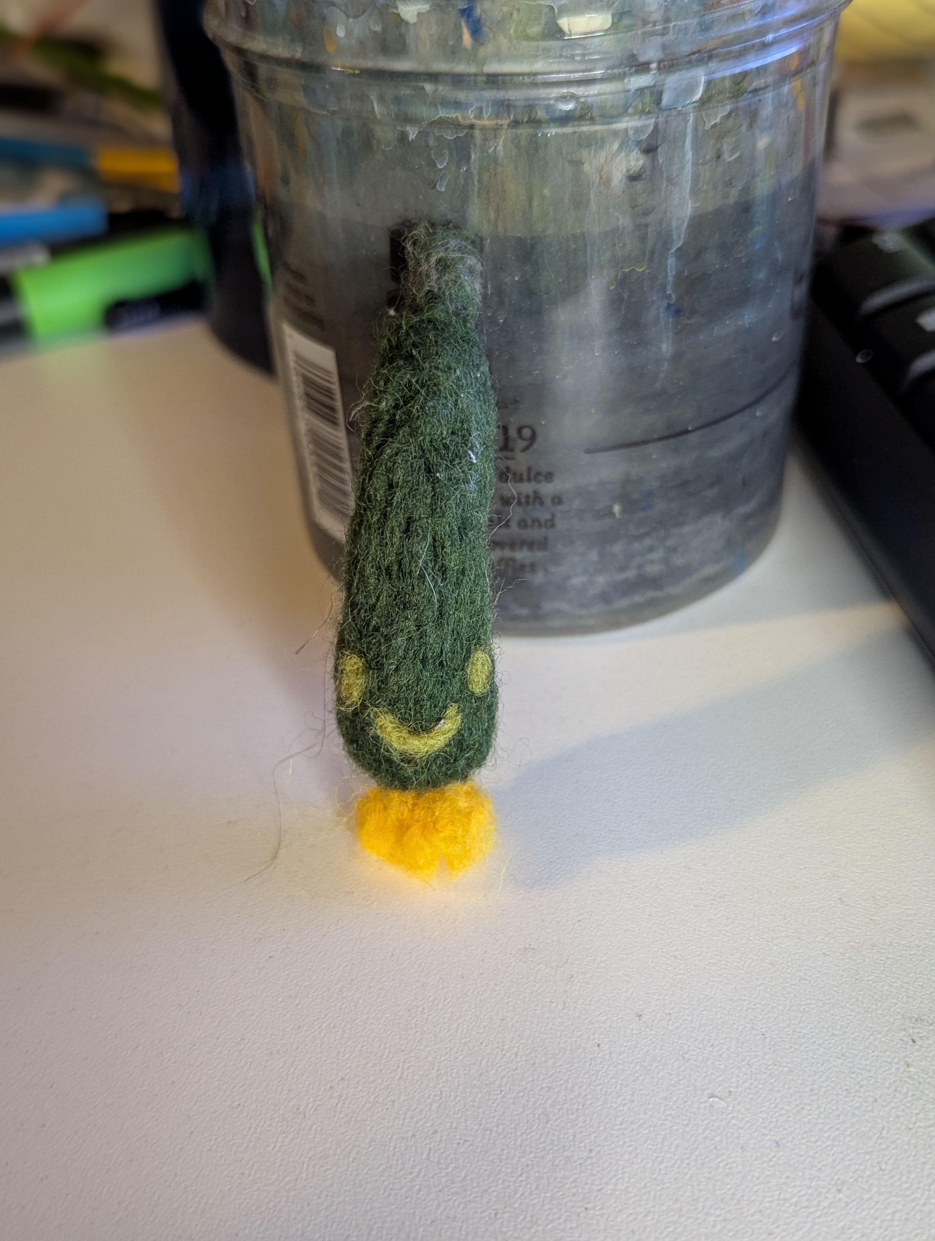 The Barkeep and the Bro, by AJ Truman (m/m, both cis). A contemporary romcom, which was always going to be a hard sell, and indeed it didn’t work for me. This is an age gap, forbidden boss/employee, daughter’s ex-boyfriend, gay-or-possibly-bi-for-you book, and the tropes kind of took over. But because I read it and mentioned it to a friend, I was given a felted zucchini. (There is a scene in the novel in which a zucchini figures prominently.) So. Take that as you will.